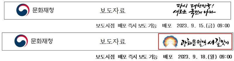 문화재청은 그간 보도자료 우측 상단에 현 정부의 슬로건인 '다시 대한민국! 새로운 국민의 나라'라는 문구를 써왔으나 지난달 18일부터는 '광화문 월대 새길맞이'라는 문구를 쓰고 있다.