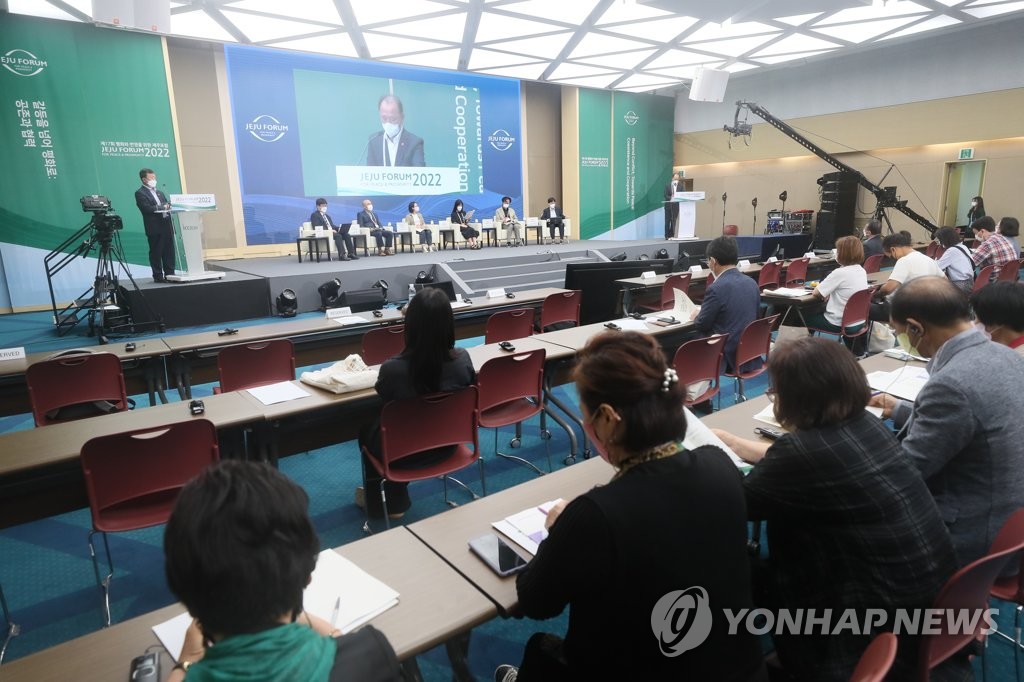 | ▲ 제주포럼 기후 생태 위기 극복 주제 세션 (서귀포=연합뉴스) 박지호 기자 = 제17회 평화와 번영을 위한 제주포럼 이틀째인 15일 오전 서귀포시 제주국제컨벤션센터 한라홀에서 '기후 생태 위기 극복을 위한 자연과 인간의 공존 모델' 세션이 진행되고 있다. 2022.9.15 jihopark@yna.co.kr |