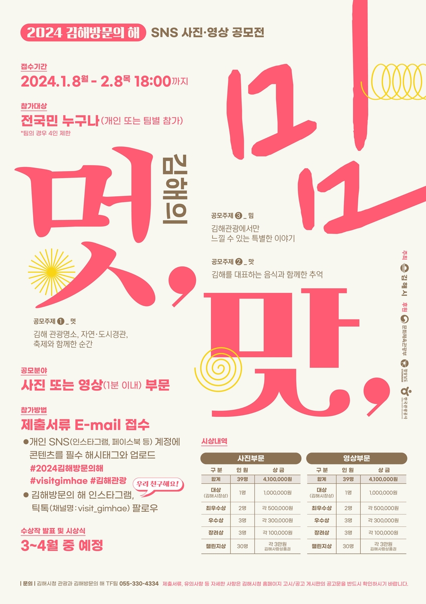 김해의 '멋' (김해의 자연·명소와 함께한 순간), '맛'(김해를 대표하는 음식과 함께한 추억), '밈'(김해 관광에서만 느낄 수 있는 특별한 이야기)을 부제로 한다.