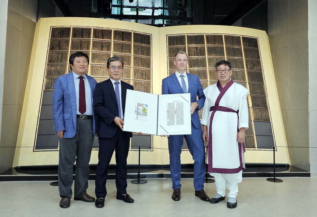 죌터 관장은 직지 복본 기증에 대한 감사의 표시로 이날 '구텐베르크 42행 성서' 복제본을 고인쇄박물관 측에 전달했다.