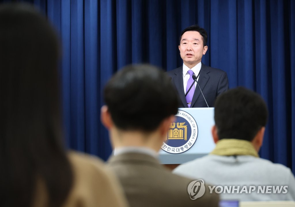 ▲ Presidential spokesperson Lee Do-woon gives a press briefing at the presidential office in Seoul on March 27, 2023. (Yonhap)
