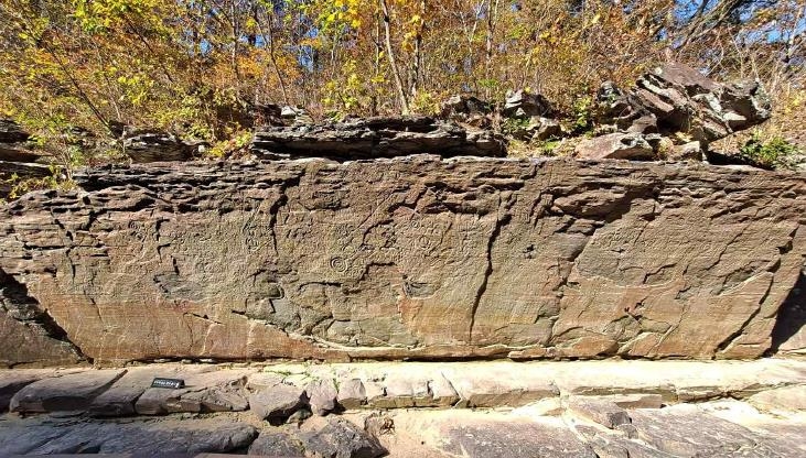 대곡리 암각화는 높이 4m, 너비 10m의 'ㄱ'자 모양으로 꺾인 절벽 암반에 새긴 바위그림이다.