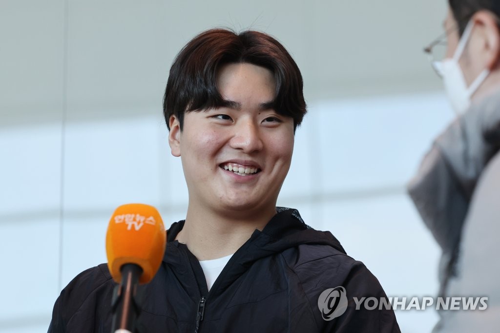 | ▲ 심준석 '밝은 미래를 꿈꾸며' (영종도=연합뉴스) 임화영 기자 = 미국프로야구 피츠버그 파이리츠와 입단 계약한 심준석이 24일 오후 인천국제공항을 통해 출국하기에 앞서 취재진과의 대화 중 미소를 보이고 있다, 2023.1.24 hwayoung7@yna.co.kr |