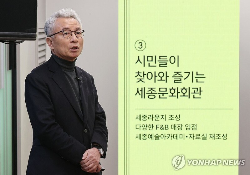 이어 "그동안 단순화, 획일화된 서비스를 표준화하려는 게 공연시장의 흐름이었지만, 이제는 그 흐름이 변하고 있고, 반격은 더 빠르게 이뤄지고 있다"며 "차별화된 새로운 경험을 제공하는 세종문화회관으로 거듭나겠다"고 덧붙였다.