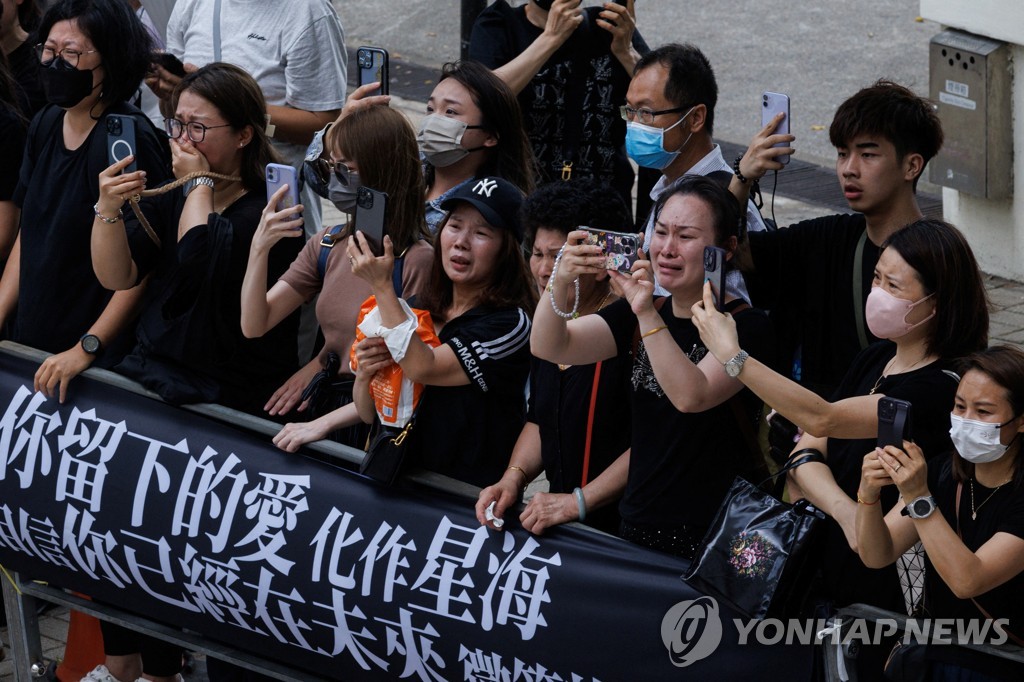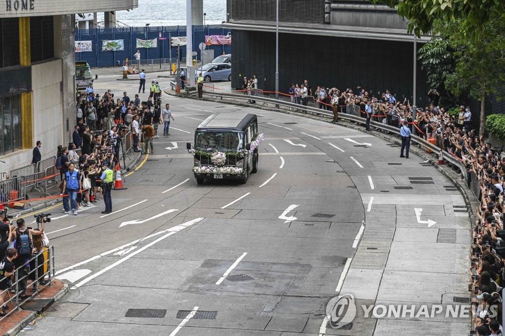 | ▲ (AP=연합뉴스) 1일 홍콩에서 가수 코코 리의 장례식이 끝난 후 운구차가 팬들의 배웅 속 장례식장을 떠나는 모습.2023.8.1. |