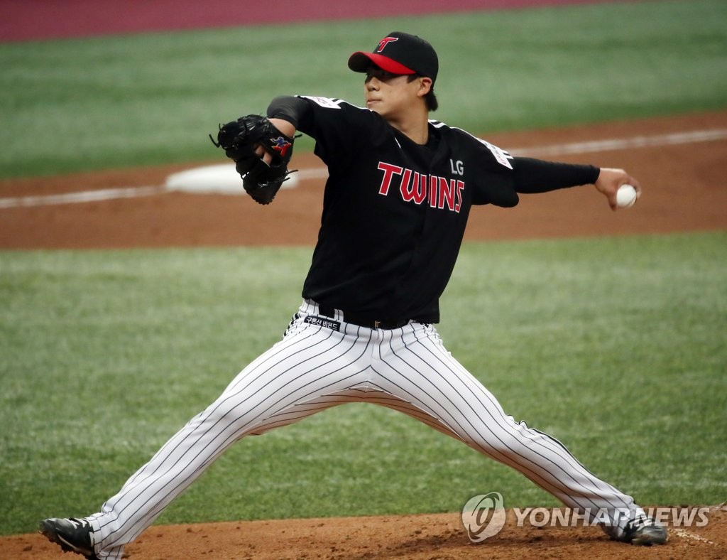 | ▲ In this file photo from March 16, 2021, Nam Ho of the LG Twins pitches against the Kiwoom Heroes in the bottom of the fourth inning of a Korea Baseball Organization preseason game at Gocheok Sky Dome in Seoul. (Yonhap) |