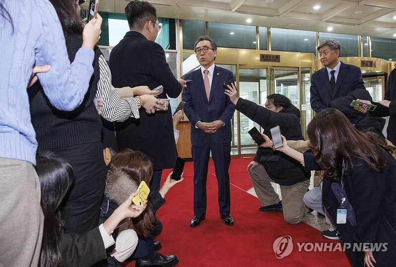 | ▲ Foreign Minister Cho Tae-yul answers reporters' questions at the foreign ministry building in Seoul on Jan. 11, 2024. (Yonhap) |