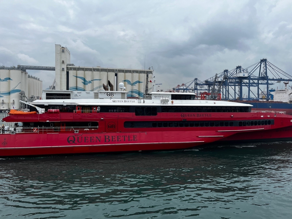 (부산=연합뉴스) 조정호 기자 = 부산항만공사(BPA)는 부산-후쿠오카를 신규 운항 예정인 쾌속선 퀸 비틀(QUEEN BEETLE)호가 21일 부산항에 시범 접안했다고 밝혔다.