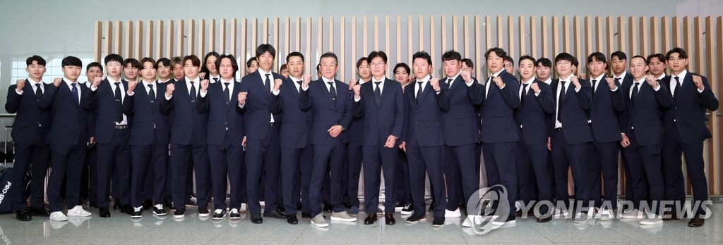 | ▲ '가자! 결전의 땅으로!' 이강철 감독이 이끄는 2023 월드베이스볼클래식(WBC) 한국 대표팀이 3월 4일 오후 일본 오사카로 출국하기 전 기념촬영을 하고 있다. [연합뉴스 자료사진] |