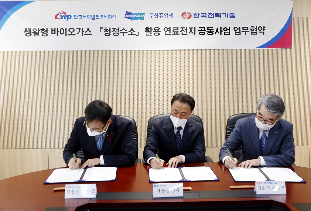 Under the deal with Korea Western Power Co. and KEPCO Engineering & Construction Company, Doosan Fuel Cell will develop fuel cells using biogas and provide the main parts for the fuel cells, the company said.