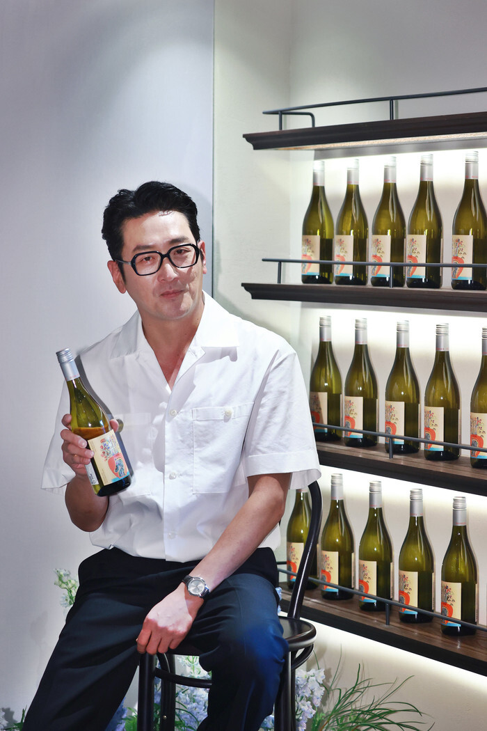 South Korean actor Ha Jung-woo poses for a photo during a publicity event in Seoul on Aug. 16, 2024, to promote the limited-edition white wine brand Call Me Later with Vino Paradise, designed the wine label himself. (Yonhap)