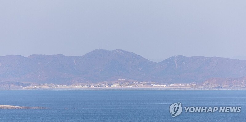 | ▲ This file photo, taken from an observatory on Yeonpyeong Island near the Northern Limit Line, the de facto sea border with North Korea in the Yellow Sea, on Nov. 30, 2023, shows the landscape of a village in the North Korean town of Ongjin. (Yonhap) |