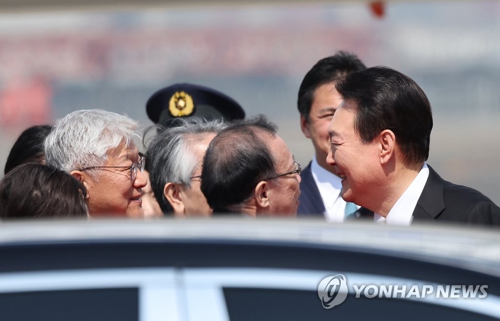 TOKYO, March 16 (Yonhap) -- President Yoon Suk Yeol said Thursday that South Korea and Japan should work together to deal with threats from North Korea, as he opened a summit with Japanese Prime Minister Fumio Kishida in Tokyo amid a thaw in the long-strained relations between the two countries.
