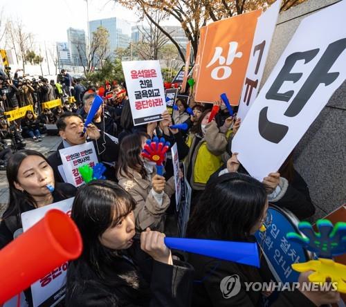 "The Yoon Suk Yeol government trampled on the people's legally established rights and pushed through the pro-Japanese negotiations to exonerate Japanese companies," Park Seok-un, a progressive activist, said during the rally.