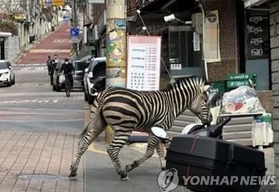 The zebra reportedly broke free from Seoul Children's Grand Park's zoo in eastern Seoul around 2:50 p.m. and was roaming around the nearby residential area, zoo officials said.