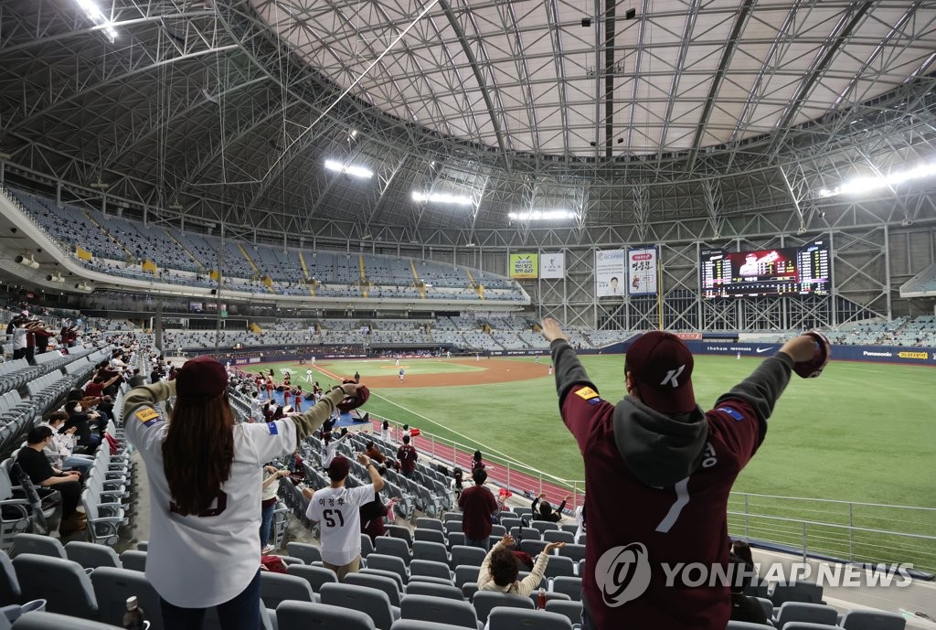 | ▲ Fans take in a Korea Baseball Organization regular season regular season game between the home team Kiwoom Heroes and the Samsung Lions at Gocheok Sky Dome in Seoul on April 3, 2021. (Yonhap) |