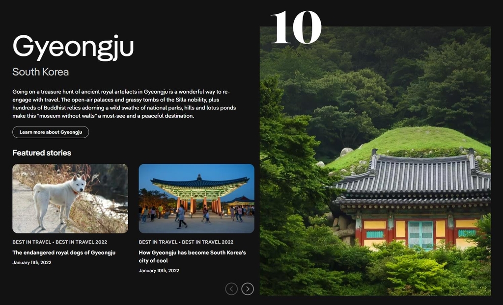 | ▲ 론리 플래닛 웹사이트 중 경주 소개 부분 발췌 [경주시 제공. 재판매 및 DB 금지] |