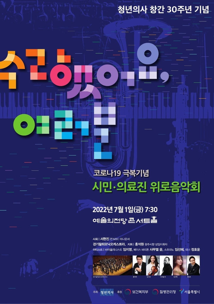 보건의료신문 '청년의사'는 창간 30주년을 맞아 내달 1일 서울 예술의전당 콘서트홀에서 '수고했어요 여러분'이라는 주제로 클래식 콘서트를 개최한다고 28일 밝혔다.