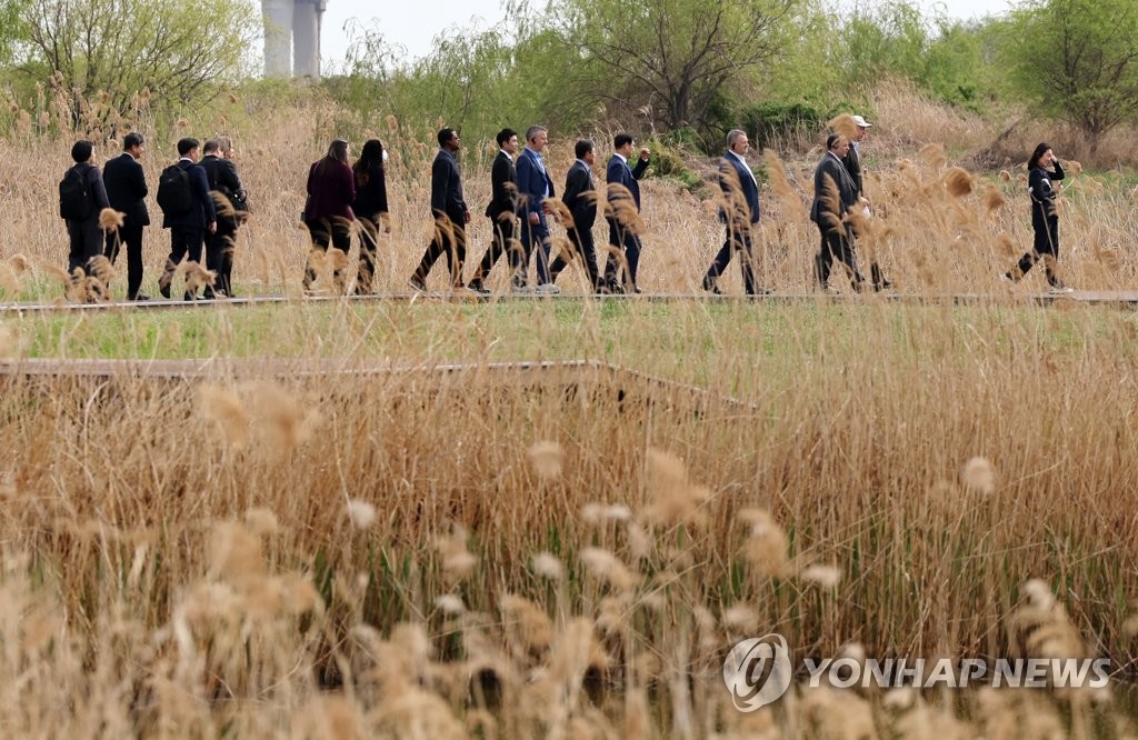 (부산=연합뉴스) 박성제 차근호 기자 = 2030세계박람회 개최 후보지를 현장 실사하는 국제박람회기구(BIE) 실사단은 4일 오후부산 첫 방문지인 을숙도를 찾았다.