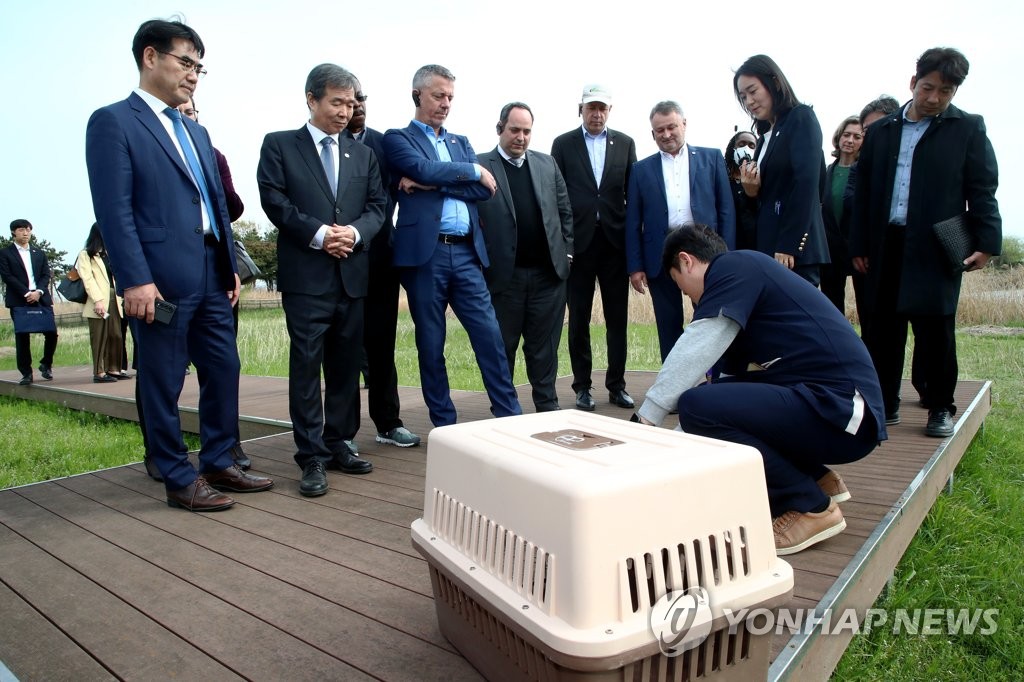 | ▲ 자연의 지속 확인하는 엑스포 실사단 (부산=연합뉴스) 손형주 기자 = 국제박람회기구(BIE) 실사단이 4일 오후 부산 사하구 을숙도생태공원을 찾아 치료가 끝난 새를 자연으로 돌려보내는 체험을 하고 있다. 2023.4.4 [공동취재] handbrother@yna.co.kr |