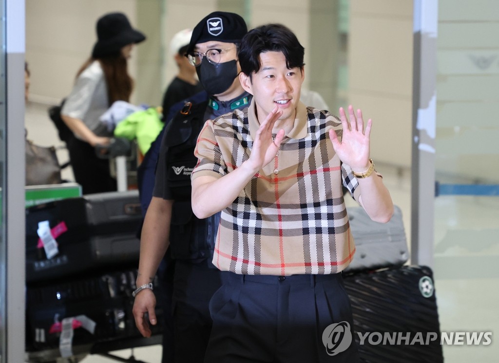 (영종도=연합뉴스) 이의진 기자 = 잉글랜드 프로축구 프리미어리그(EPL) 득점왕에 오른 지난 시즌 후 예상치 못한 악재와 경사가 번갈아 찾아와 다사다난했던 또 한 시즌을 보낸 손흥민(토트넘)이 한국으로 돌아왔다.