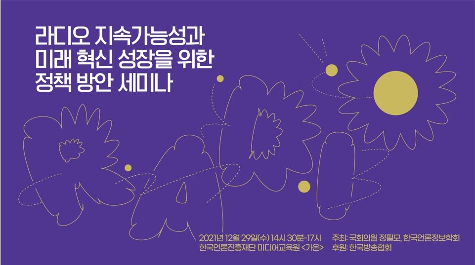 ▲ '라디오 지속가능성과 미래 혁신 성장을 위한 정책 방안' 세미나 = 더불어민주당 정필모 의원과 한국언론정보학회가 공동주최하는 '라디오 지속가능성과 미래 혁신 성장을 위한 정책 방안' 세미나가 오는 29일 한국언론진흥재단 미디어교육원 가온에서 개최된다.