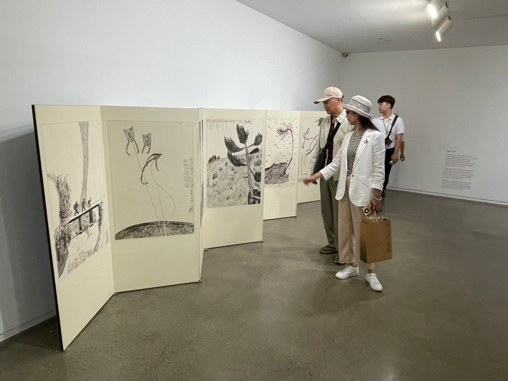 관광객들은 1층에서 단체 기념사진을 촬영하고 경기도가 준비한 기념품을 받은 뒤 여행사 직원의 안내 말을 듣고 1층부터 3층까지 전시된 그림과 공예품 등을 꼼꼼히 둘러봤다.