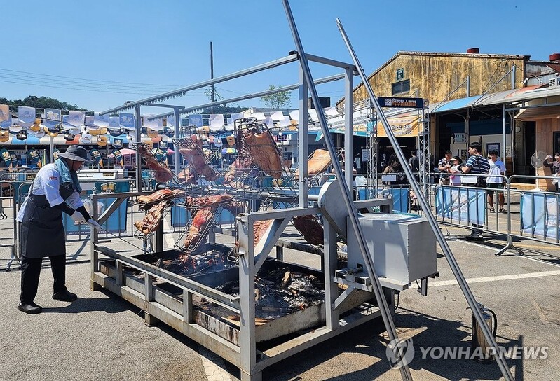 | ▲ 예산 맥주페스티벌 개막 (예산=연합뉴스) 김소연 기자 = 1일 충남 예산시장에서 개막한 '2023 예산 맥주페스티벌' 행사장에서 바비큐가 만들어지고 있다. 2023.9.1 soyun@yna.co.kr |