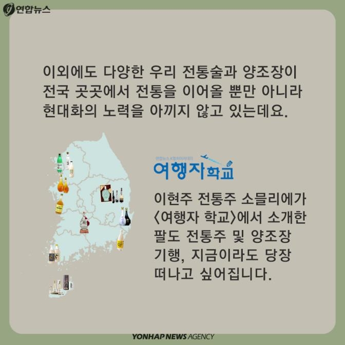 이현주 전통주 소믈리에가 '여행자 학교'에서 소개한 팔도 전통주 및 양조장 기행, 지금이라도 당장 떠나고 싶어집니다.