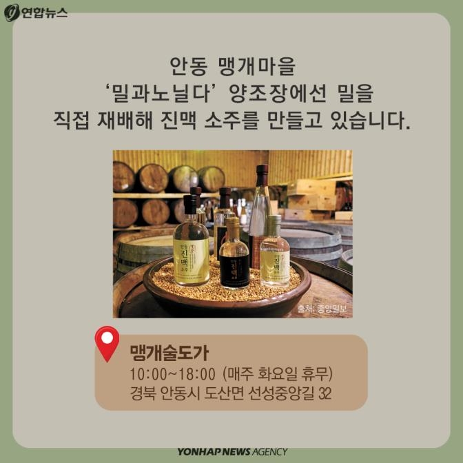 안동 맹개마을 '밀과노닐다' 양조장에선 밀을 직접 재배해 진맥 소주를 만들고 있습니다.
