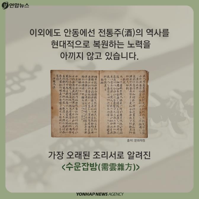 이외에도 안동에선 전통주(酒)의 역사를 현대적으로 복원하는 노력을 아끼지 않고 있습니다.