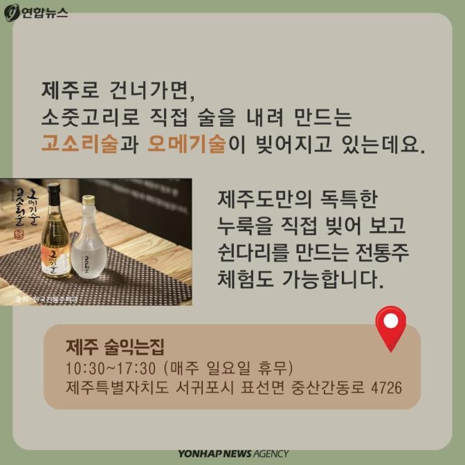 제주로 건너가면, 소줏고리로 직접 술을 내려 만드는 '고소리술'과 '오메기술'이 빚어지고 있는데요.