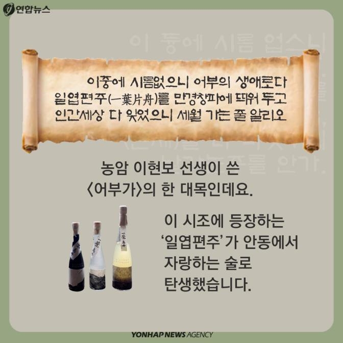 농암 이현보 선생이 쓴 <어부가>의 한 대목인데요. 이 시조에 등장하는 '일엽편주'가 안동에서 자랑하는 술로 탄생했습니다.