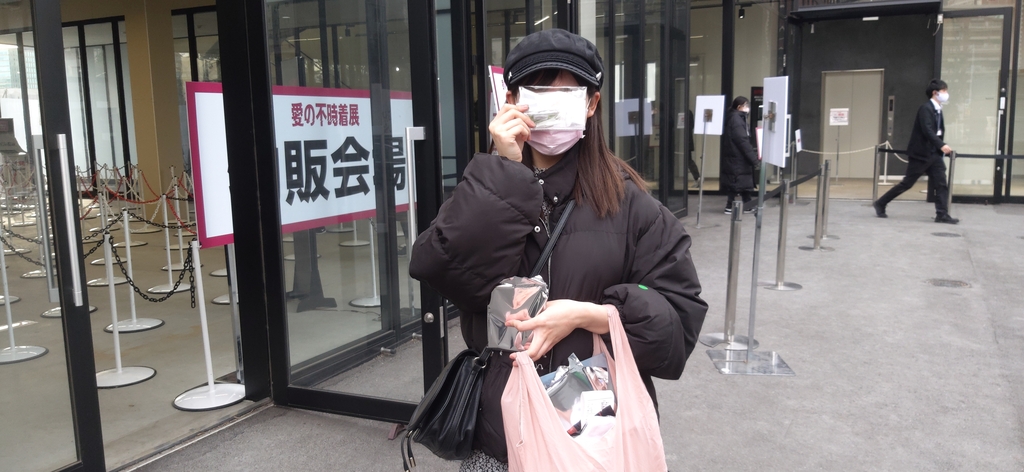 | ▲ (도쿄=연합뉴스) 도쿄 시부야구 JR하라주쿠역 인근의 '징'(jing)에서 8일 개막한 '사랑의 불시착' 전시회를 관람한 지요다니 유마 씨가 굿즈 매장에서 산 기념품이 가득 담긴 봉투를 들고 있다. |