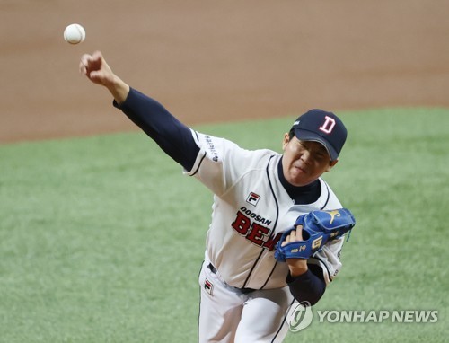 SEOUL, Nov. 21 (Yonhap) -- A 20-year-old right-hander got the upper hand in an unlikely pitching duel against a 21-year-old righty in a Korean Series game on Saturday, with both pitchers making their first career postseason starts.