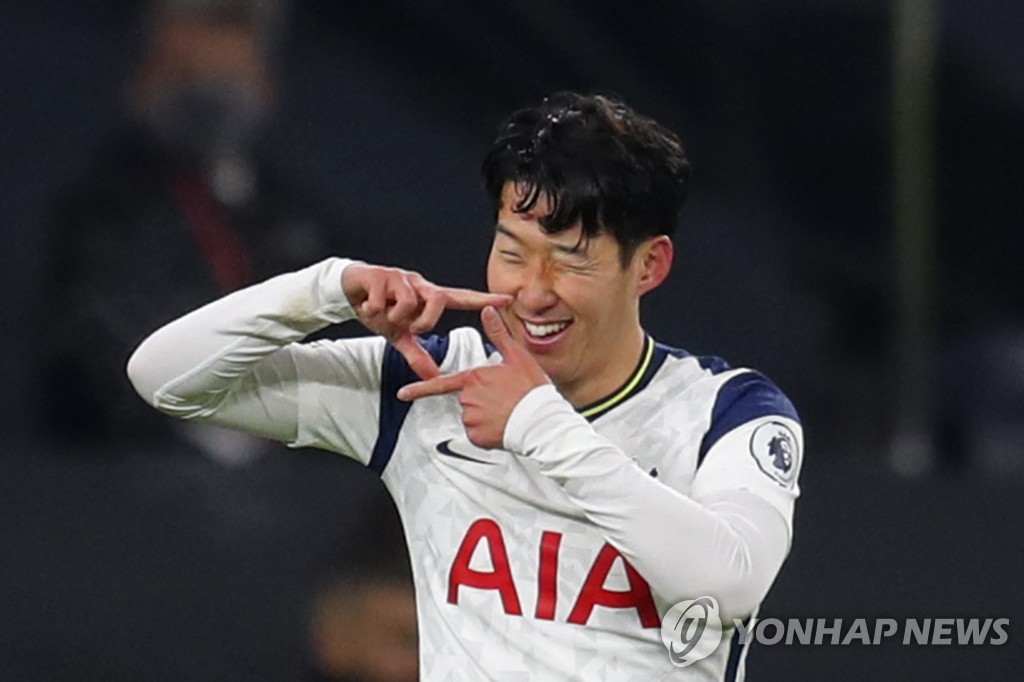 | ▲ In this Associated Press file photo from Dec. 6, 2020, Son Heung-min of Tottenham Hotspur celebrates his goal against Arsenal during the teams' Premier League match at Tottenham Hotspur Stadium in London. (Yonhap) |