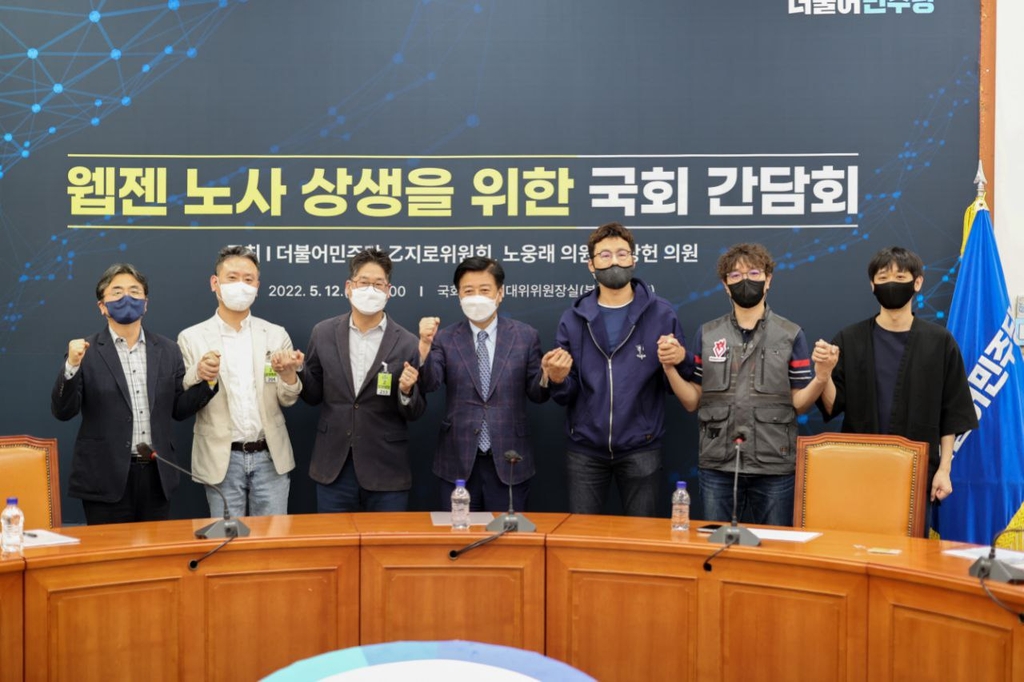 (서울=연합뉴스) 정수연 김주환 기자 = 게임업계 최초로 노조가 파업을 결의했던 웹젠[069080]의 노사가 더불어민주당 주재로 열린 간담회에서 추가 교섭에 합의했다.