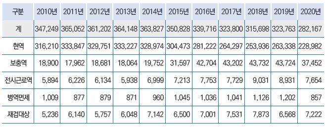 | ▲ 연도별 병역판정검사 병역처분 현황 [병무청 제공. 재판매 및 DB 금지] |