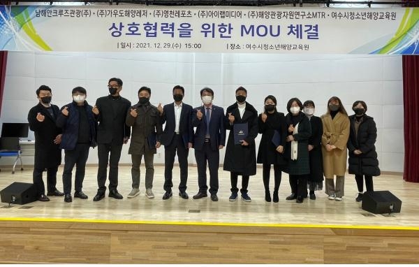 여수시청소년해양교육원은 최근 남해안 크루즈관광, 가우도 해양레저, 영천레포츠, 아이랩미디어, 해양관광자원연구소MTR 등과 함께 상호협력을 위한 업무 협약을 했다.