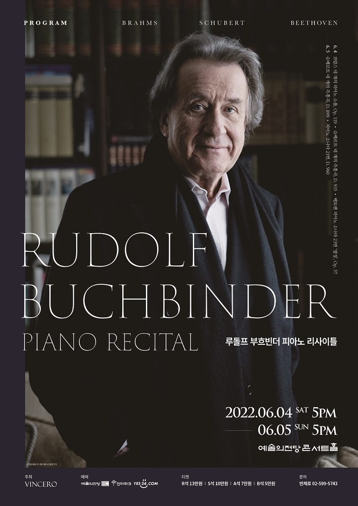 공연기획사 빈체로는 부흐빈더가 6월 4일과 5일 서울 예술의전당 콘서트홀에서 리사이틀을 개최한다고 18일 밝혔다.
