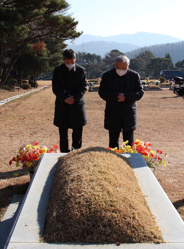 염수정·정순택, 선임 교구장 묘소 앞 묵상…"다시 한번 큰 책임감 느껴"