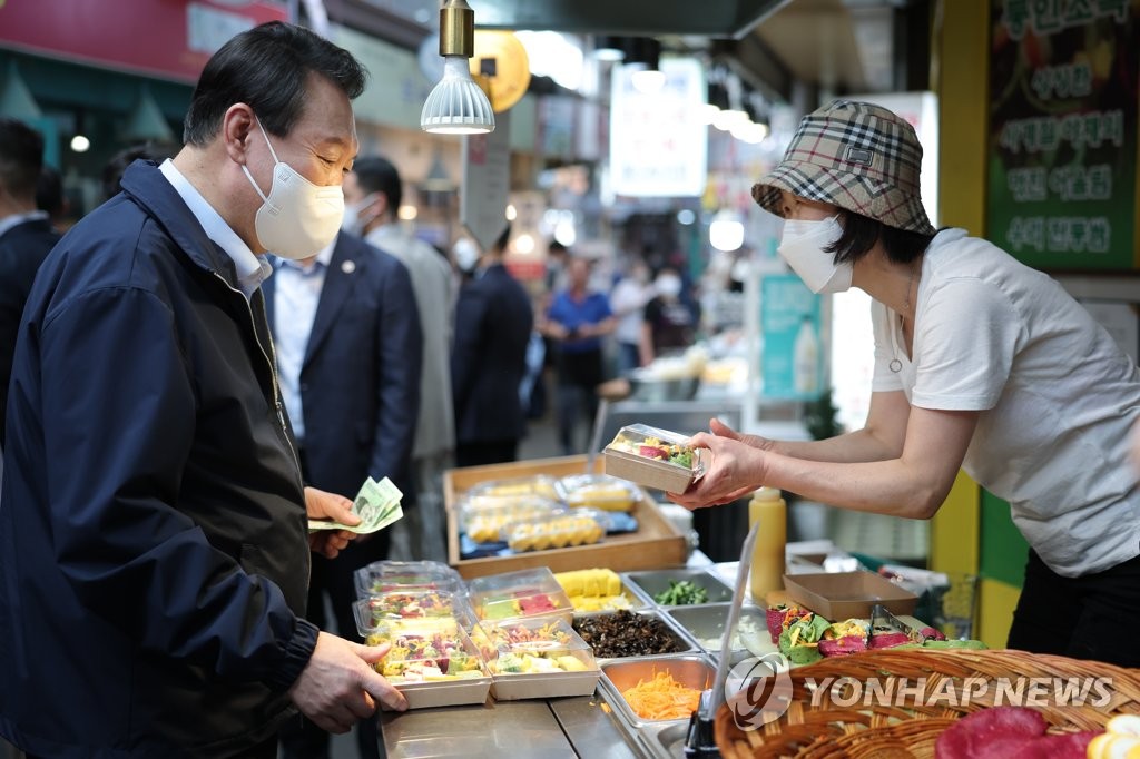尹대통령, 통인시장 찾아 "명절 편히 쇠시라…민생 저희가 책임"
