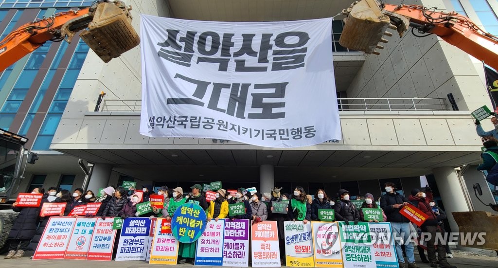 그는 "'국립공원이며 천연기념물인 설악산에 어떻게 케이블카를 놓을 수 있느냐'는 국민의 걱정을 충분히 알고 있는 만큼 국가 시범 사업에 걸맞은 글로벌 명품 케이블카로 만들겠다"고 강조했다.