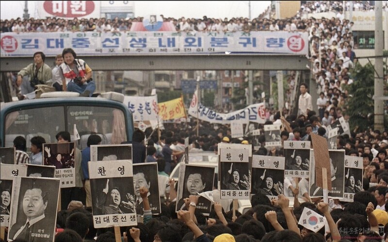 영화의 마지막 장면인 1987년 김 전 대통령의 광주 방문은 대중 정치의 열기로 타오르는 듯한 느낌이다. 16년 만에 광주를 찾은 그를 맞이하러 온 인파는 광주역의 지붕까지 덮는다. 김 전 대통령이 탄 차를 인파가 에워싸고 앞으로 나아가는 모습은 정치인을 대중의 바다에 뜬 작은 조각배에 비유하는 걸 실감하게 한다.