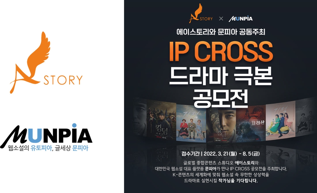 ▲ 에이스토리·문피아 드라마 극본 공모전 개최 = 콘텐츠제작사 에이스토리와 웹소설 플랫폼 문피아가 '제1회 IP 크로스 드라마 극본 공모전'을 개최한다.