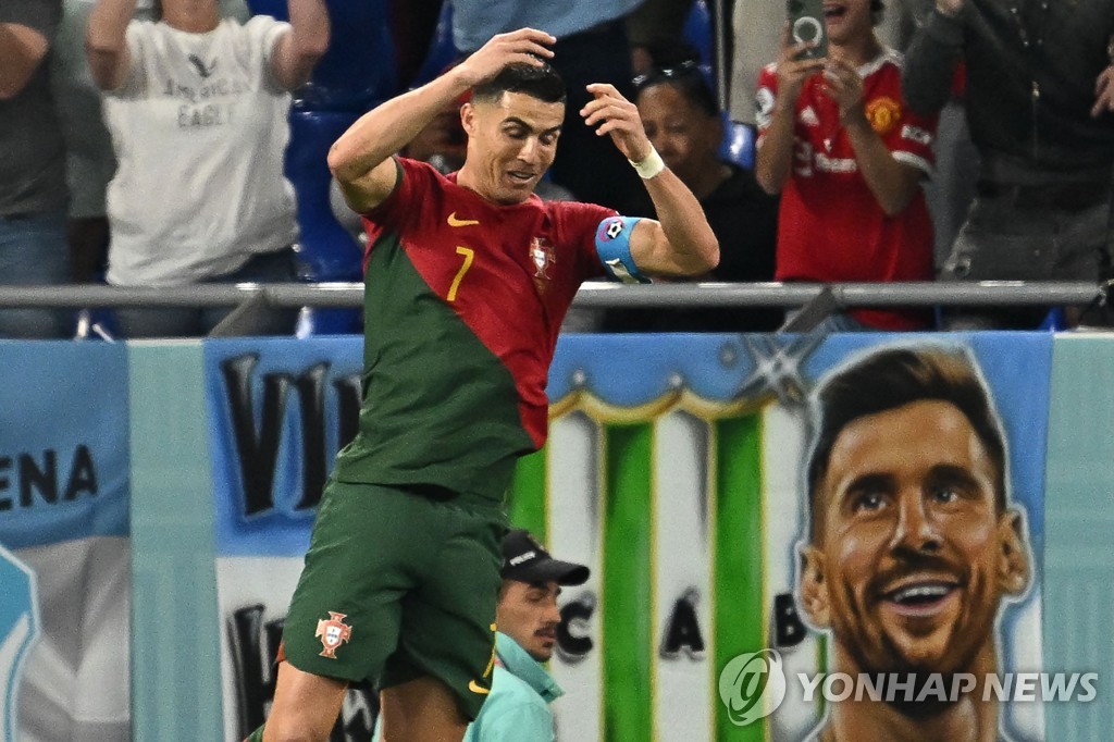 | ▲ 가나와 경기 중 메시의 얼굴 앞에서 세리머니를 펼치는 호날두 [AFP=연합뉴스] |