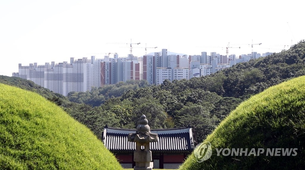 | ▲ 김포 장릉 사이로 보이는 신축 아파트 단지 [문화재청 제공. 재판매 및 DB 금지] |