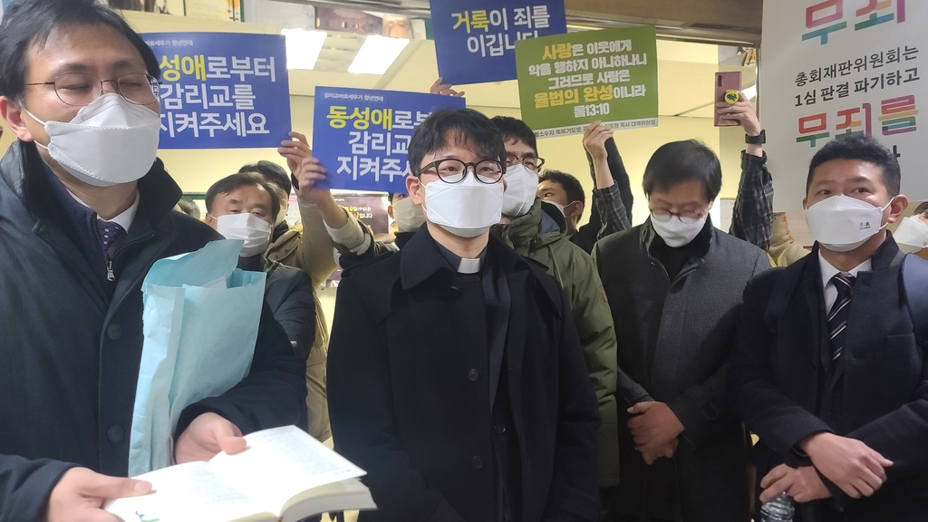 (서울=연합뉴스) 양정우 기자 = 개신교단인 기독교대한감리회(이하 감리회)가 성소수자에게 축복기도를 올렸다가 교회 재판에서 정직 처분을 받은 이동환 목사의 항소심을 진행하면서 교단 헌법에도 없는 무리수를 뒀다 논란을 자초했다.