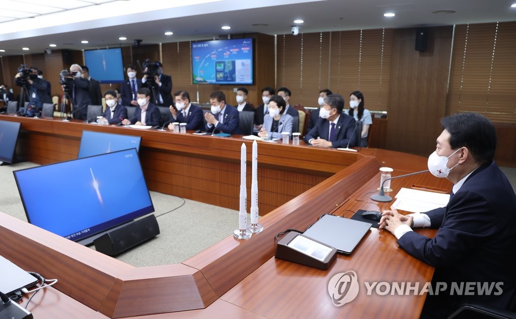 SEOUL, June 21 (Yonhap) -- President Yoon Suk-yeol lauded the successful launch of the homegrown space rocket Nuri on Tuesday, saying South Korea has opened "a path to space."
