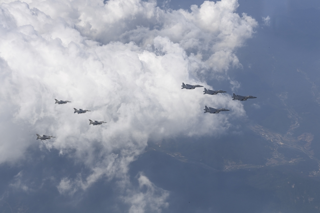 Members of South Korea's defense press corps were invited to cover the event on the back seats of the South's F-15K jets. It marked the first time journalists had boarded the warplanes in such allied air maneuvers.